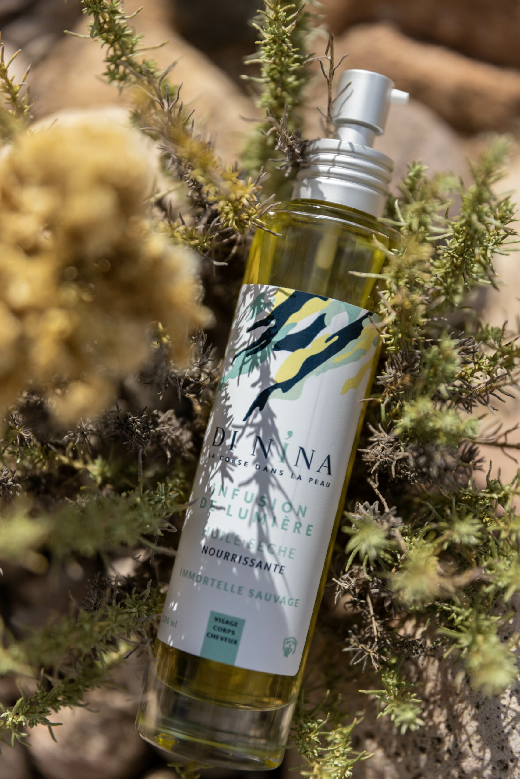 Petit secret de fabrication …..notre recette s’inspire de la recette traditionnelle Corse transmise de génération en génération . Les femmes corses ont toujours utilisé cette méthode d’extraction douce qu’est la macération solaire ! Aujourd’hui DI NINA à revisité cette méthode et nous sommes fières de la faire vivre en utilisant uniquement des Fleurs d’immortelle sauvage fraîchement cueillies à main sur le terrain familiale à Porto-Vecchio