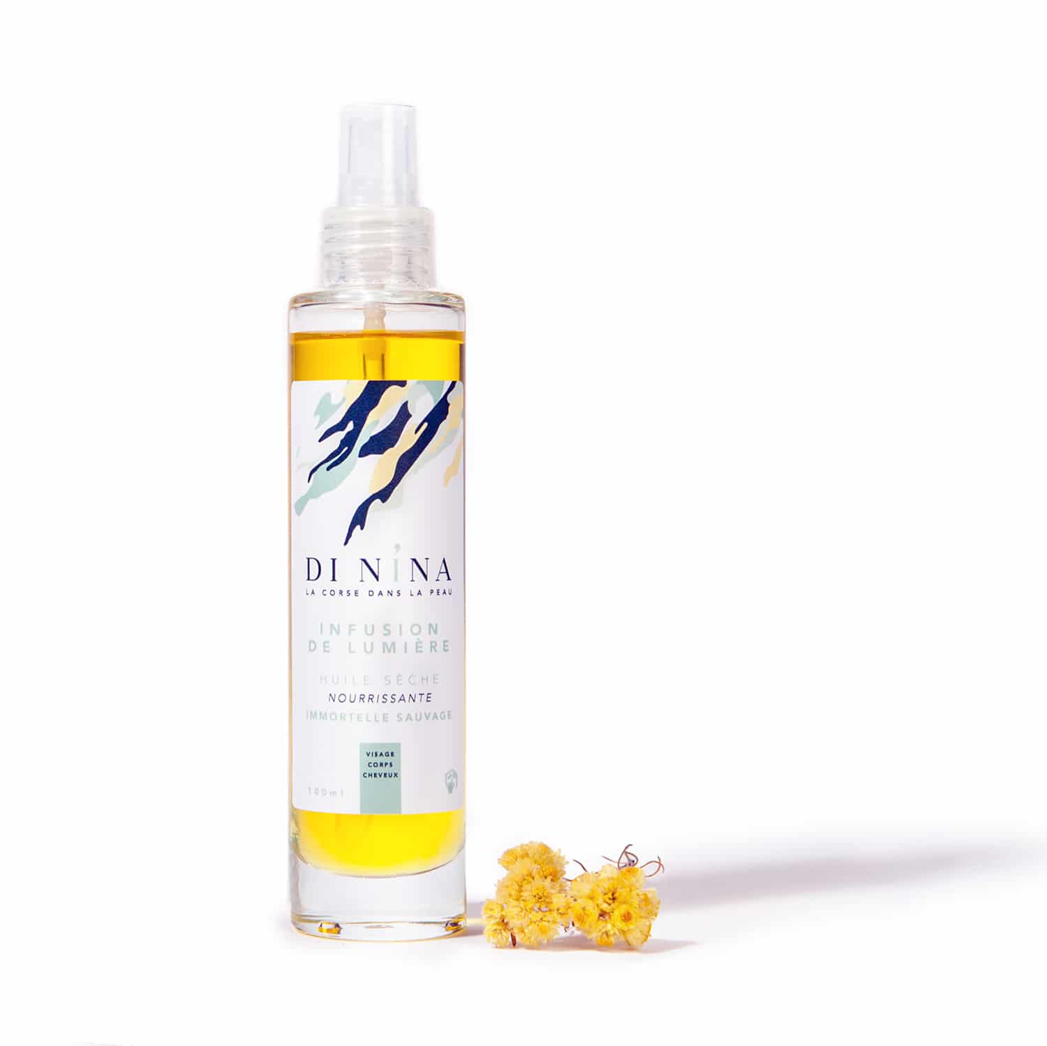 INFUSION DE LUMIÈRE huile sèche à l’immortelle est un soin essentiel nourrissant et régénérant ultra concentré. Cette huile sèche façon Monoï Corse à la fleur d’immortelle sublime la peau et les cheveux