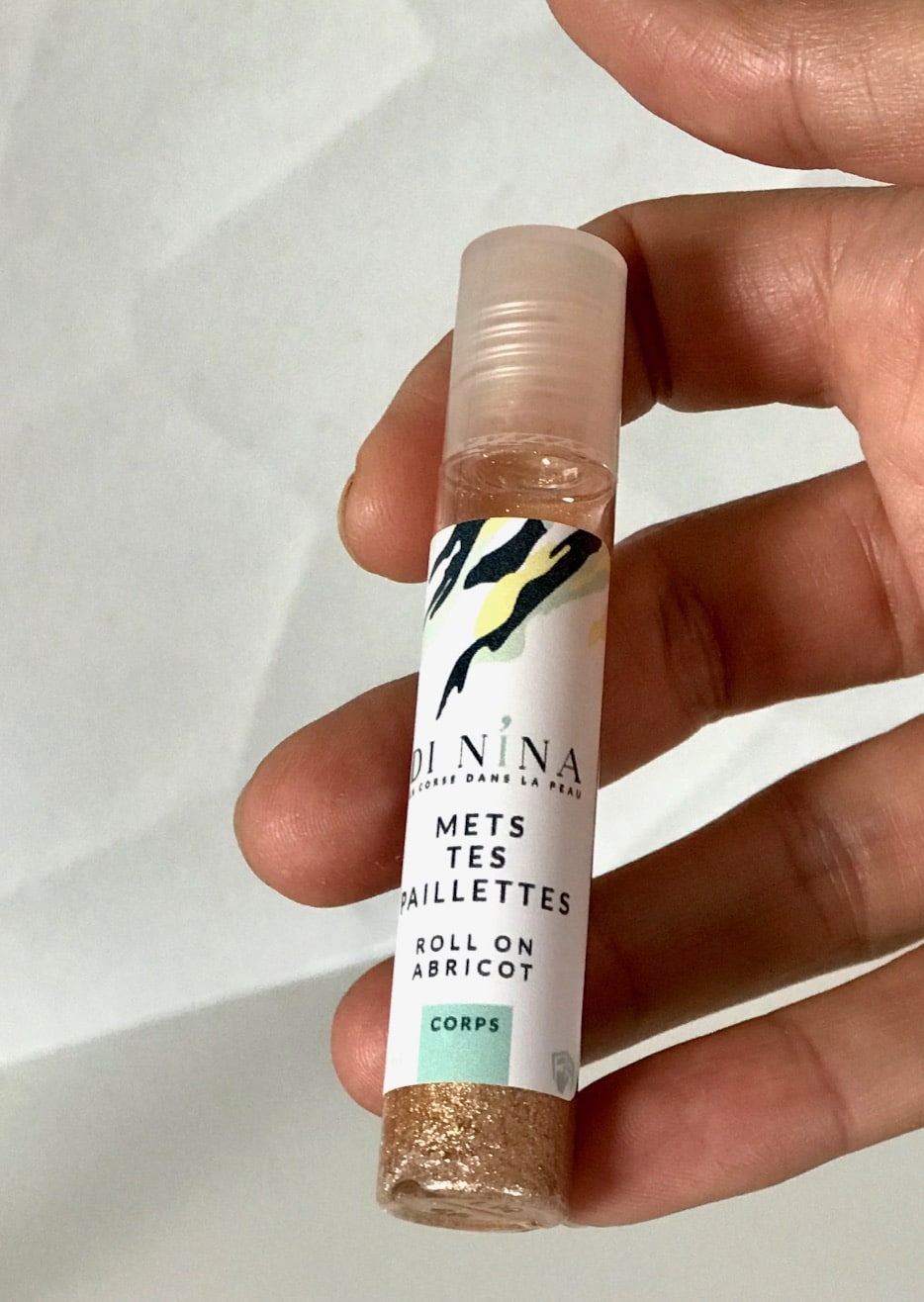 Pour apporter une touche d’éclat supplémentaire adopez et mettez des paillettes dans votre vie!!! sur les mains, le décolleté, les lèvres ou en highlighter faites vous plaisir, en plus ça sent bon l’amandon d’abricot.